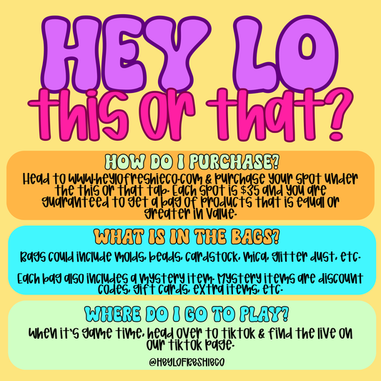 THIS OR THAT: OCTOBER 16 @ 7:30 PM CST (DO NOT CHECK OUT WITH OTHER ITEMS IN CART)